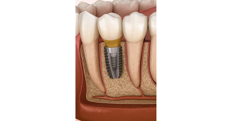 A dental implant is a small, biocompatible titanium screw that serves as an artificial tooth root.